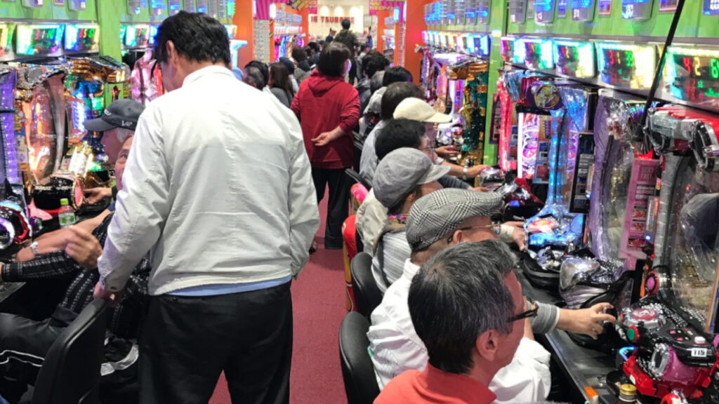 いわき市内のパチンコ店。昼間から満席だった